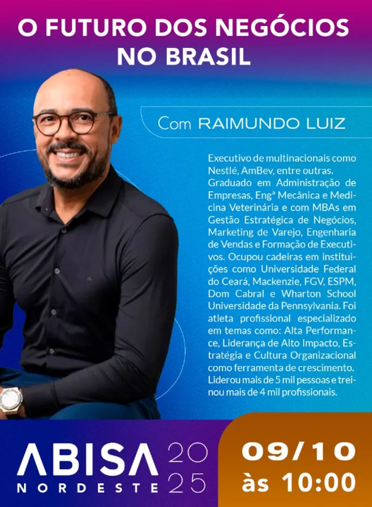 Palestra: O futuro dos negócios no Brasil – Será marcado por transformação, inovação e responsabilidade. O país vive um momento estratégico em que empresas precisam se adaptar às novas demandas de mercado e da sociedade. Em resumo: o futuro dos negócios no Brasil será digital, sustentável, humano e inovador. Aqueles que souberem unir propósito, tecnologia e responsabilidade estarão na dianteira desse novo cenário. Com Raimundo Luiz.