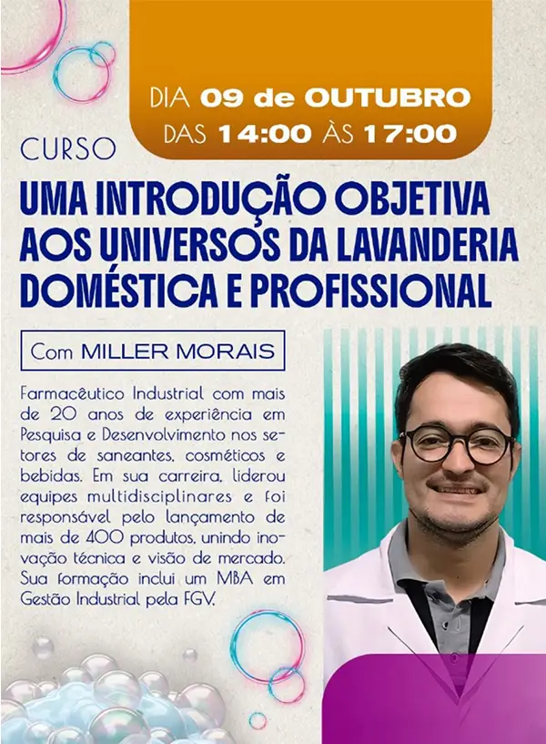 Curso: Uma introdução objetiva aos universos da lavanderia doméstica e profissional. Com Miller Morais – Formulateur Academy.