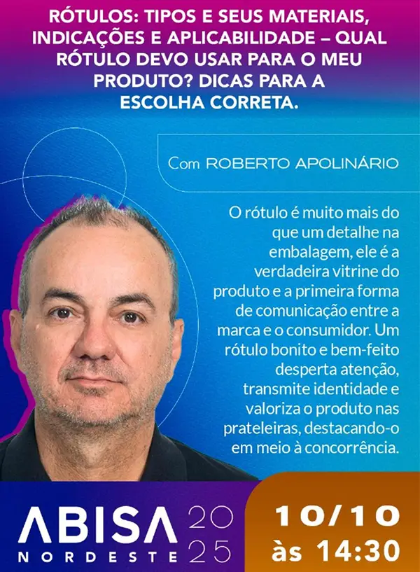 Palestra: Rótulos: tipos e seus materiais, indicações e aplicabilidade – Qual rótulo devo usar para o meu produto? Dicas para a escolha correta. Com Roberto Apolinário.