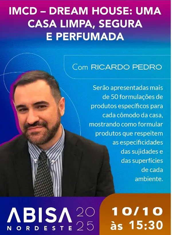 Palestra: IMCD – Dream House: uma casa limpa, segura e perfumada. Serão apresentadas mais de 50 formulações de produtos específicos para cada cômodo da casa, mostrando como formular produtos que respeitem as especificidades das sujidades e das superfícies de cada ambiente. Com Ricardo Pedro – IMCD.